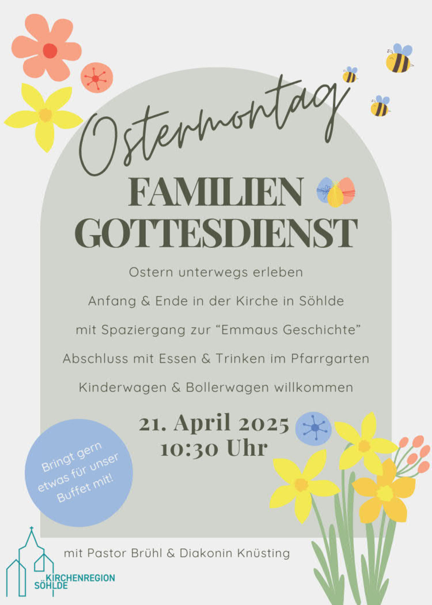 Wir laden euch herzlich ein zum Familiengottesdienst an Ostermontag in Söhlde - am Montag, 21. April um 10:30 Uhr.
