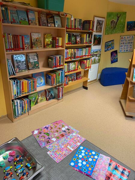 Die Anzahl der ausgeliehenen Bücher werden von den Kindergarten-- und Schulkindern auf einer Leserkarte mit bunten Stickern und Stempeln dokumentiert. Am Schuljahresende ermittelt sich daraus der Lesekönig.
