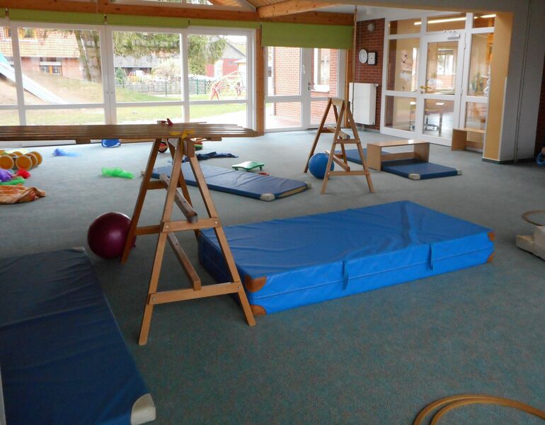 - den Bewegungsraum: mit Hengstenberg-Geräten, Schaumstoffbausteinen, Bällen, etc. wird in diesem Raum die Bewegungsfreude der Kinder unterstützt: denn Bewegung ist der Schlüssel zum Denken! Wer viel in Bewegung ist, dessen Gedanken sind auch flexibler!